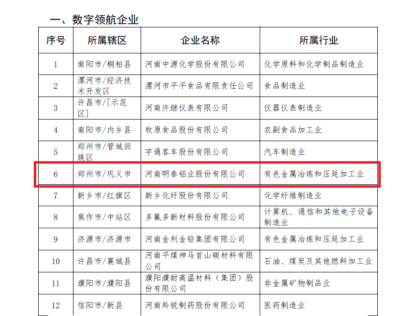 明泰鋁業(yè)及子公司入選數(shù)字領(lǐng)航企業(yè)、中小企業(yè)數(shù)字化轉(zhuǎn)型標(biāo)桿名單